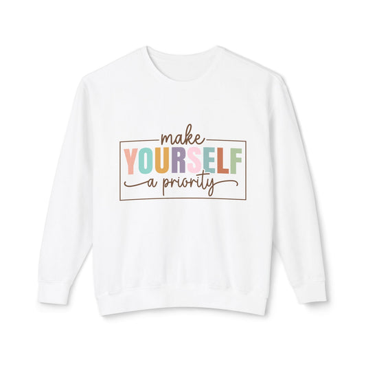 Make Yourself A Priority Unisex Lightweight Crewneck Sweatshirt