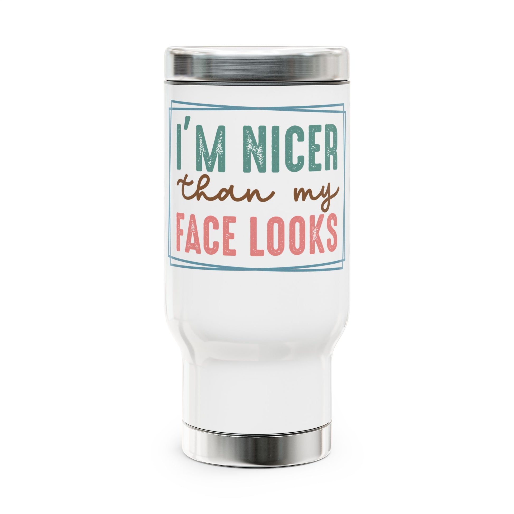 I'm Nicer Than My Face Looks Stainless Steel Travel Mug with Handle, 14oz