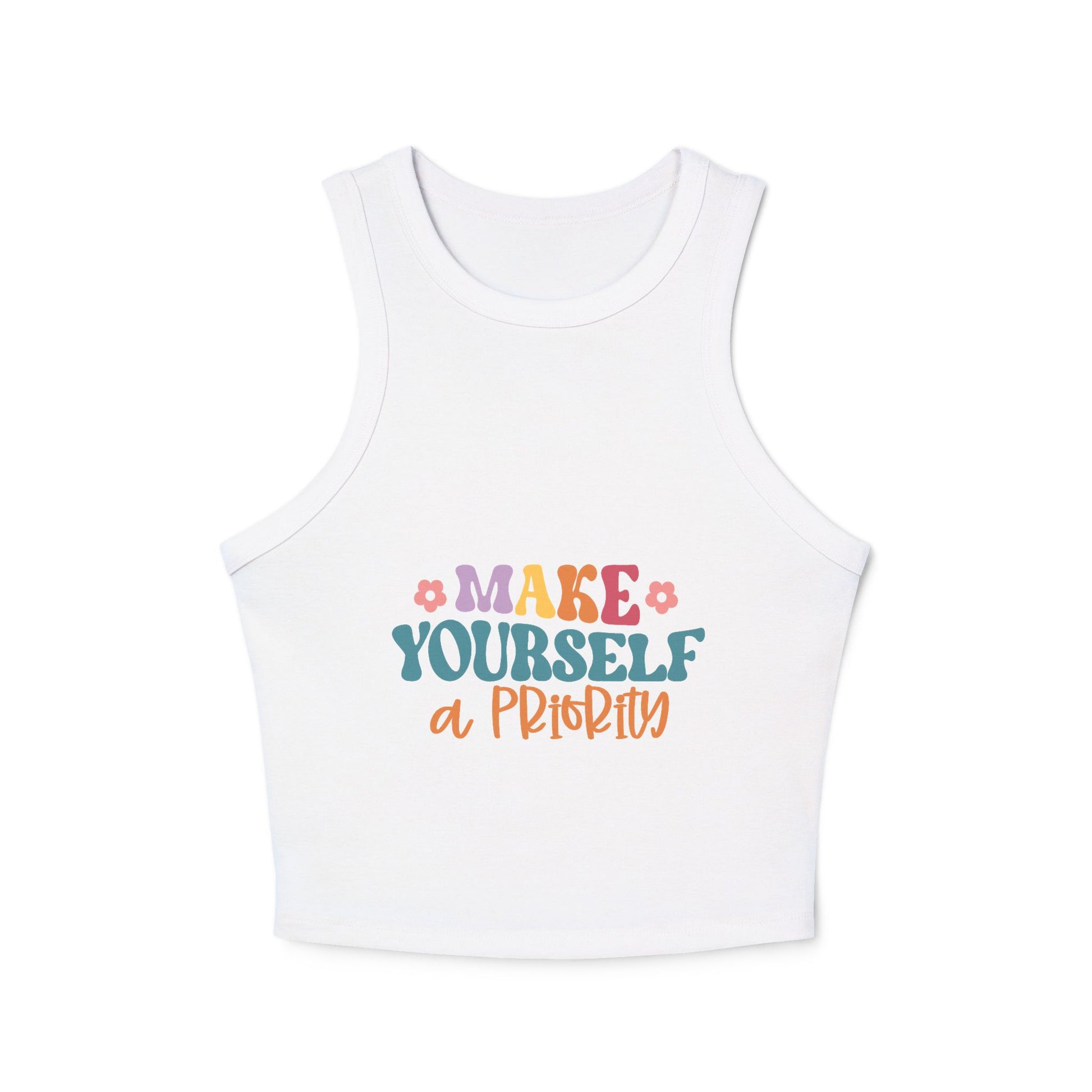 Make Yourself A Priority Women's Micro Rib Racer Tank Top