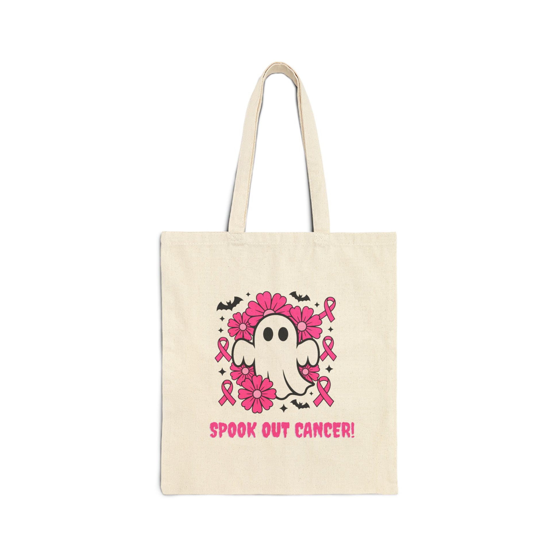 Bring some spooky fun to a powerful cause with our Spook Out Cancer Tote. Blending Halloween spirit with breast cancer awareness, this tote is the perfect way to carry your essentials while spreading a meaningful message of hope, support, and strength. Designed for both practicality and flair, it features a delightful ghost graphic with a powerful message. This tote brings a fun touch to your shopping trips and its durable design ensures it withstands everyday use while showcasing your unique personality.